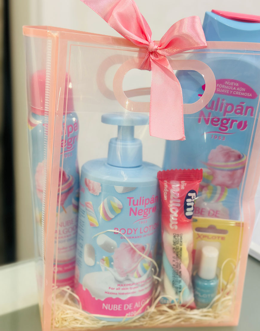 Precio unitario / porContiene gel de baño , locion corporal, desodorante en spray, todo con olor a algodon de azucar, una esponjita y un pintauñas celeste de xplote
