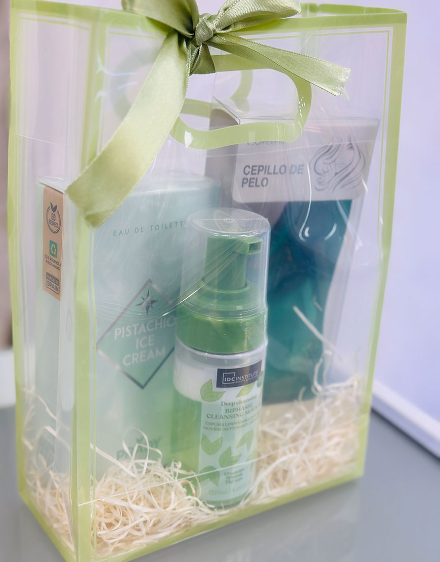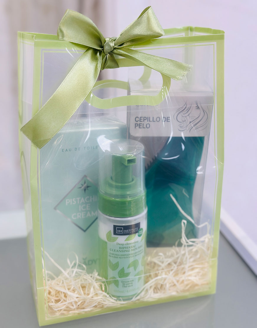Precio unitario / porContiene eau de toilette de pistacho, limpiador facial de te y cepillo antienredos