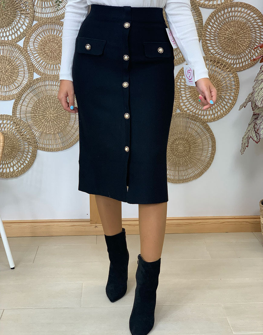 Falda midi, ideal hasta la 40/42, Cordon en la cintura ajustable, bolsillos y pequeña rajita atras