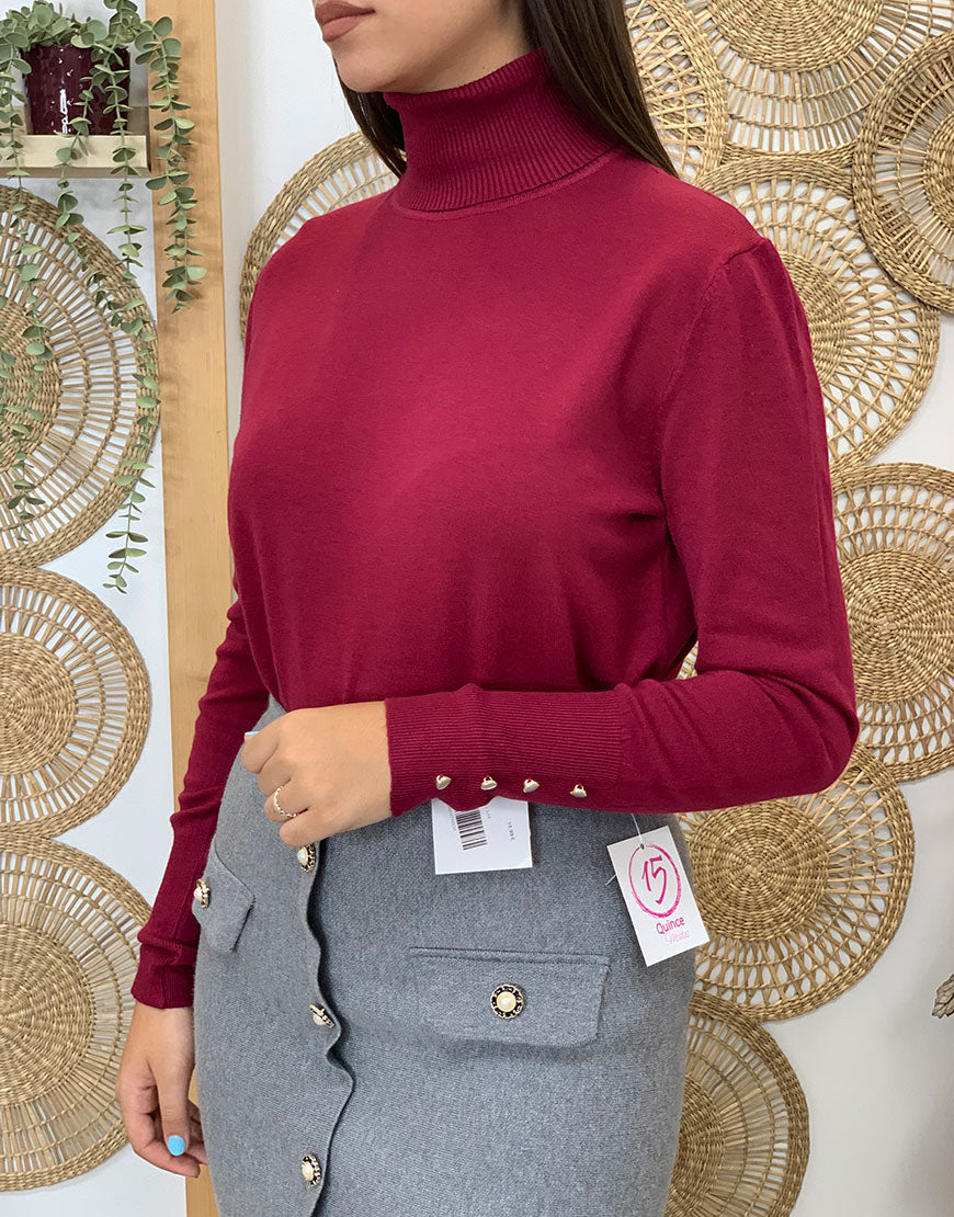 Jersey con cuello alto y vuelto de punto muy agradable y falsos botones en los puños