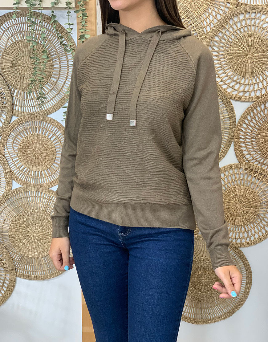 Jersey de punto line, con capucha y el tejido rayeado por la parte delantera.