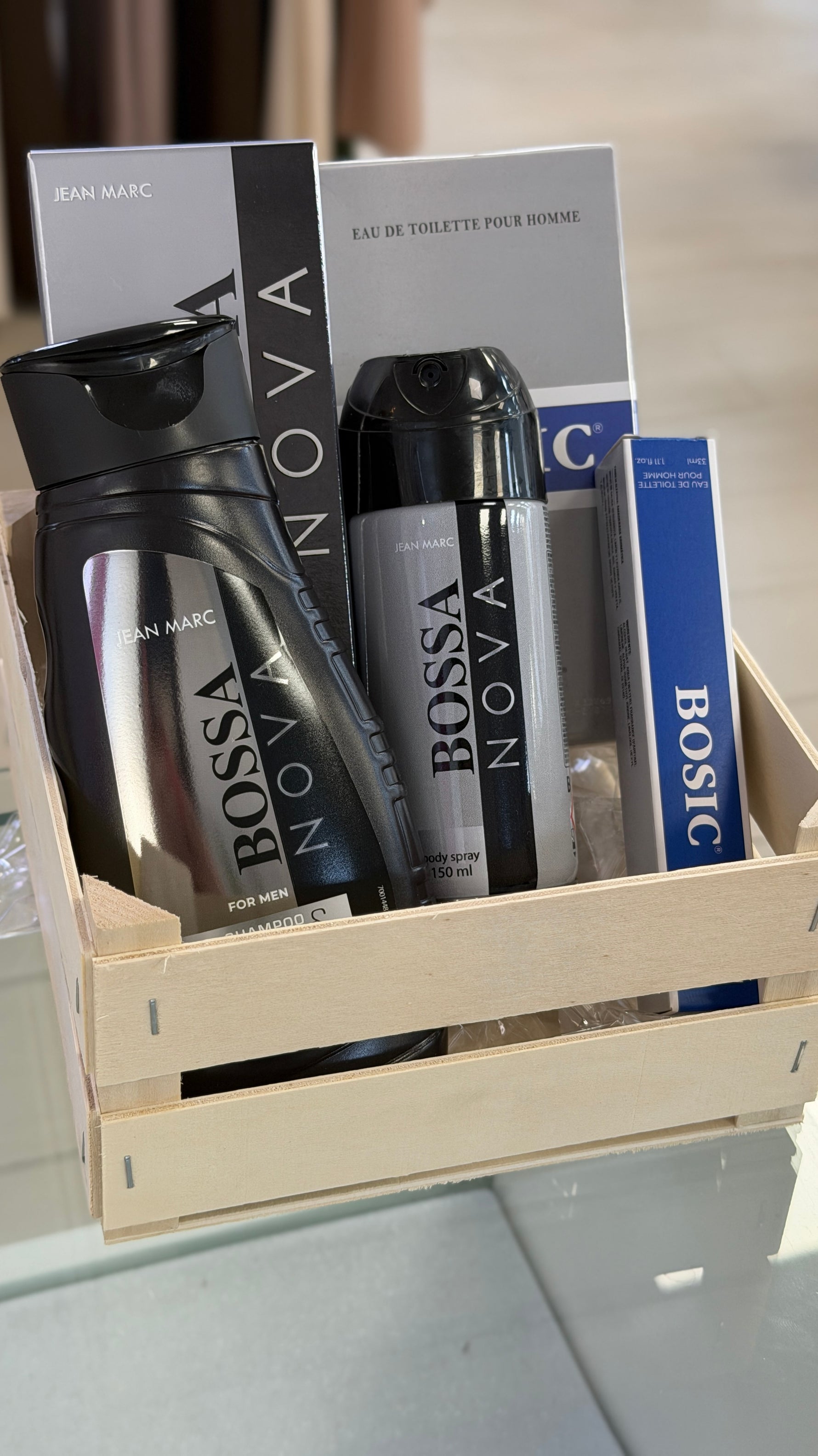 Caja de madera con todo de olor a Hugo Boss