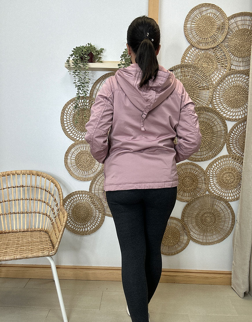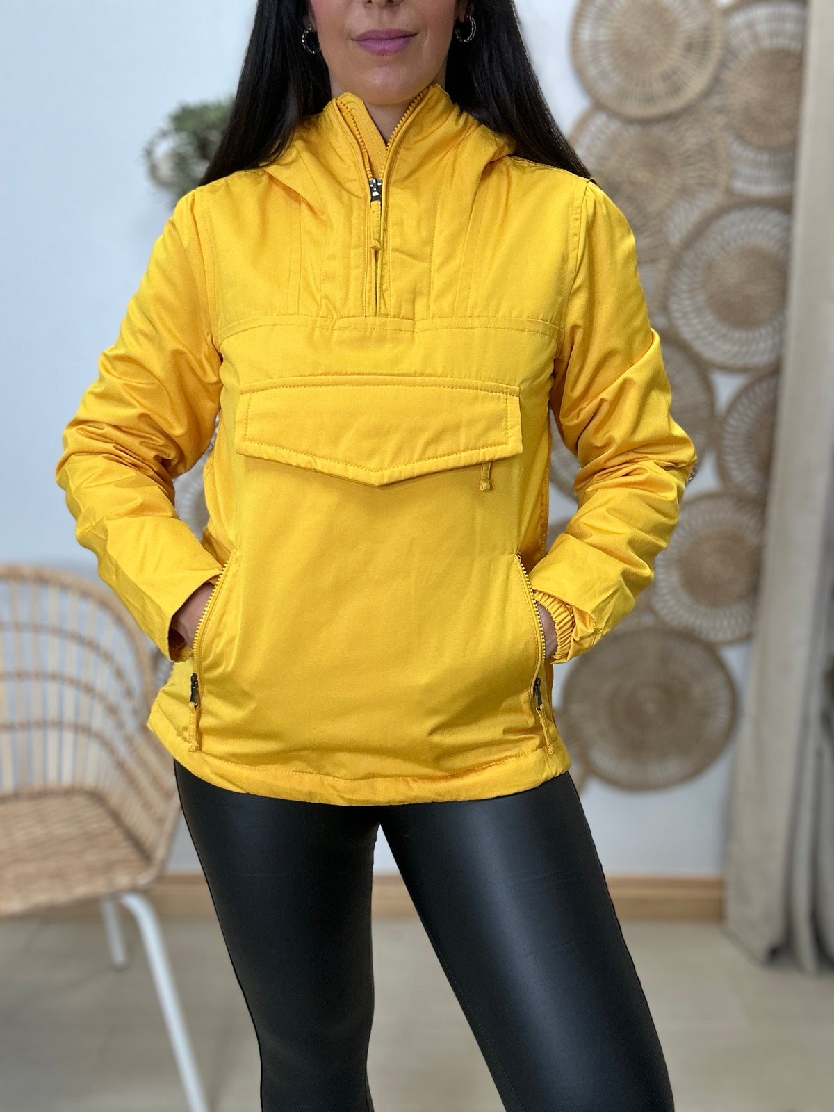 Precio unitario / porsudadera con borreguitO por dentro, bolsillos con cremallera incluido el del medio. Puño con goma por dentro. El gorro no se quita. También lleva cremallera a un lado y cordón en el bajo ajustable.