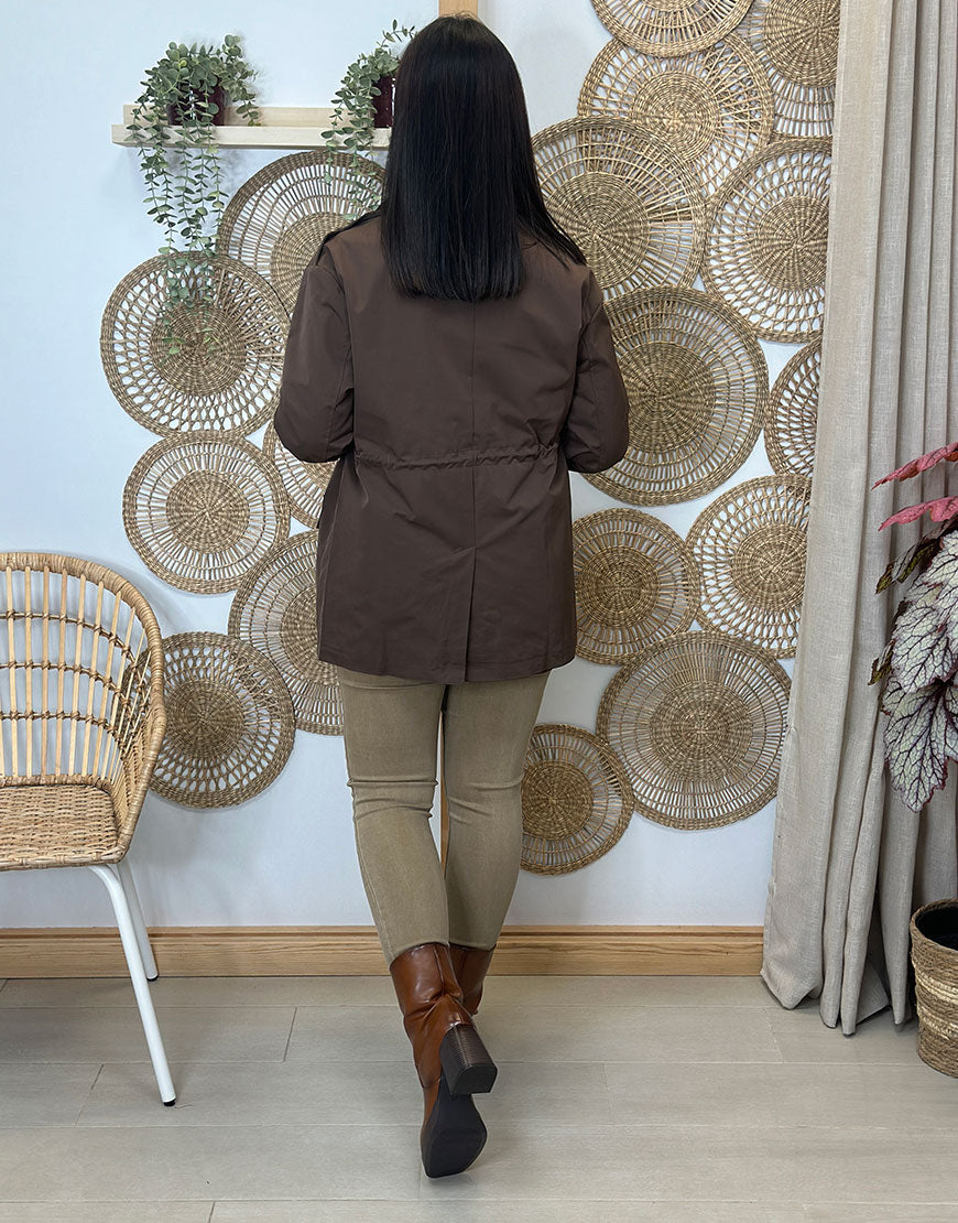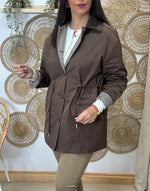Precio unitario / porchaqueta Ayamonte, preciosa chaqueta con tejido que si se moja resbala el agua, no llegando a ser chubasquero. Forrada de cuadritos que se ven en el puño y cuello de la chaqueta. El cuello es como polipiel metalizada. Cordón en la cintura que es ajustable.