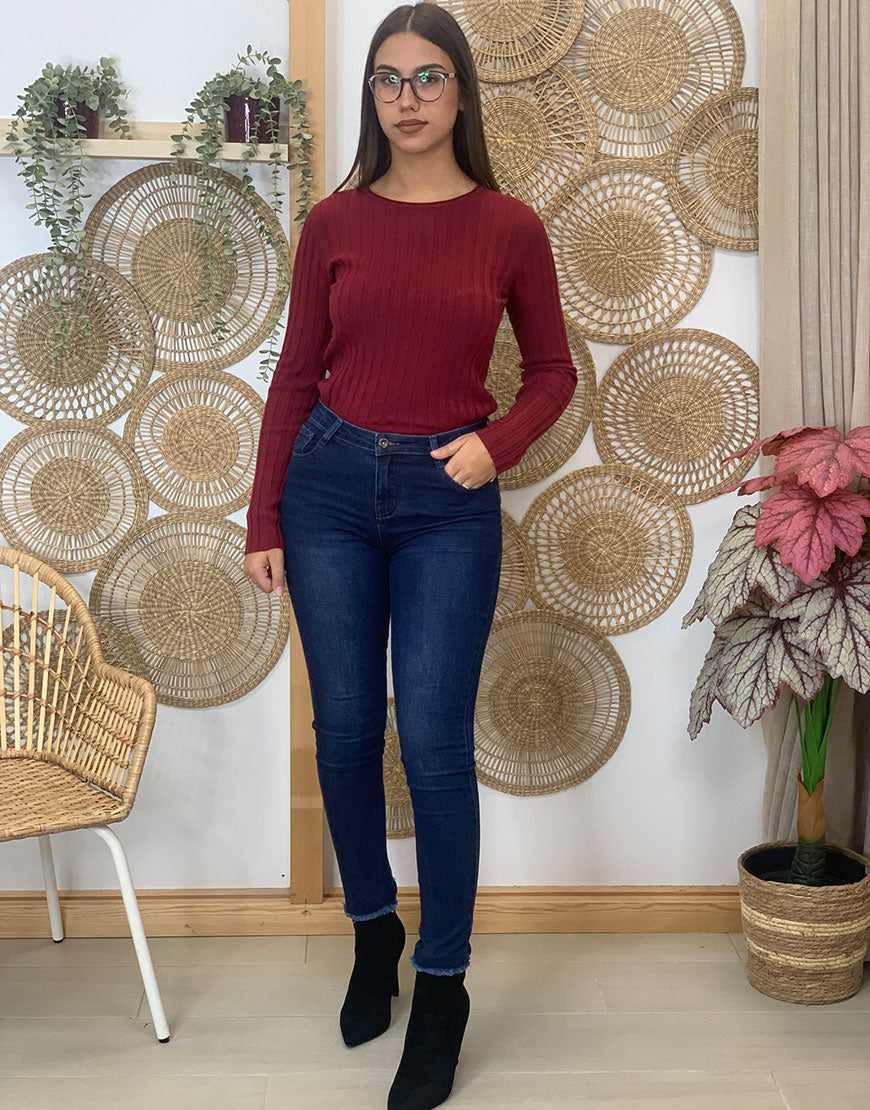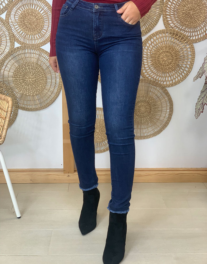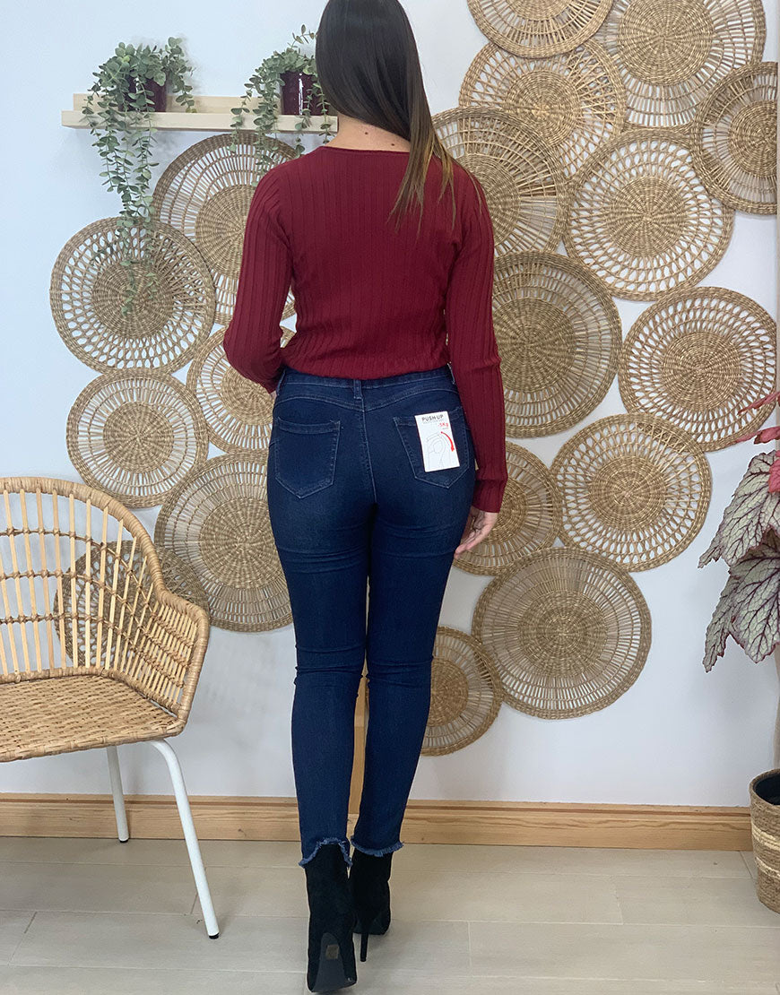 Precio unitario / porvaquero con bel bajo desflecado, talla bien, es elástico ( lo normal )
