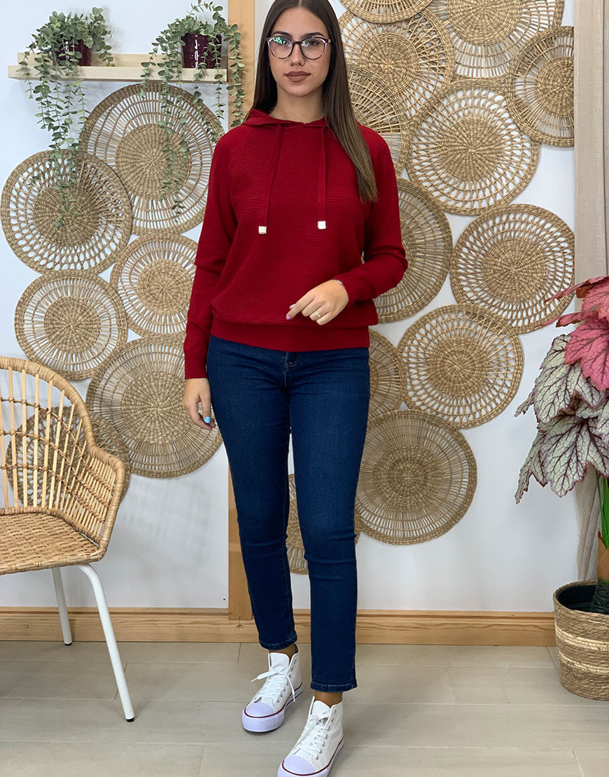 Jersey de punto line, con capucha y el tejido rayeado por la parte delantera.