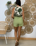 Short tela con cinturón, lleva bolsillos y goma en la cintura