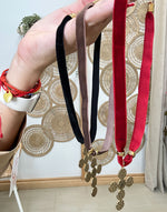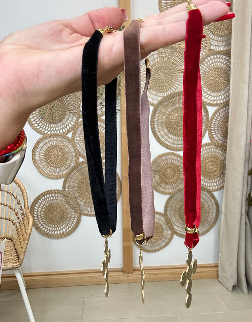 Precio unitario / porCollar tejido de terciopelo con cruz dorada